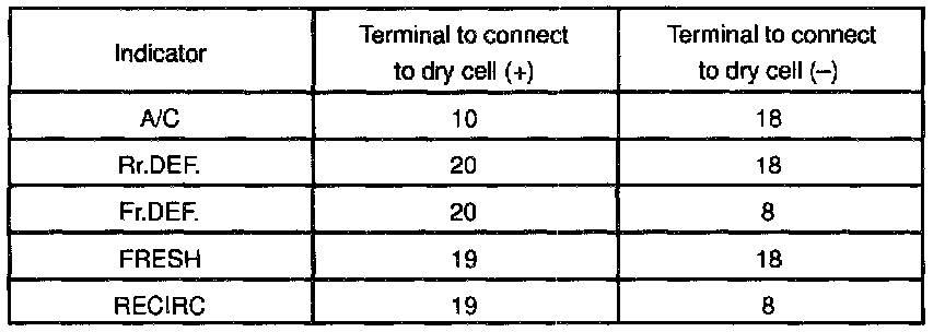 b. Connect two 1.5V dry cell batteries to the terminals in the table to the below, and then check that the indicators light up.