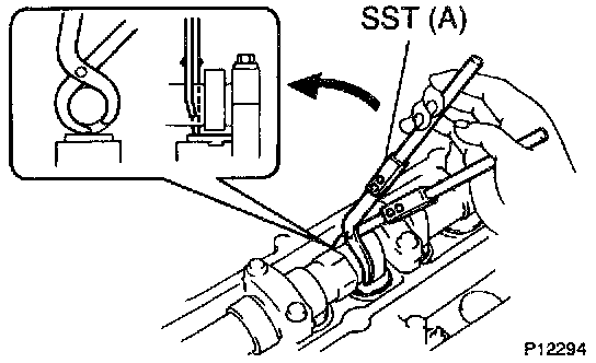 - Using SST (A), hold the camshaft as shown in the illustration.