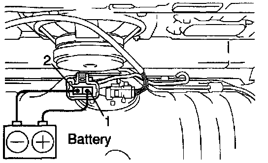 Connect the positive (+) lead from the battery to terminal 1 of the connector, and the negative (-) lead to terminal 2. Check that the fuel pump operates.