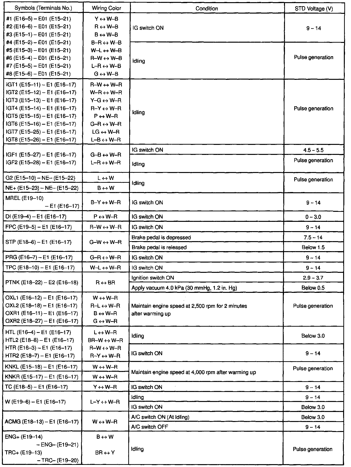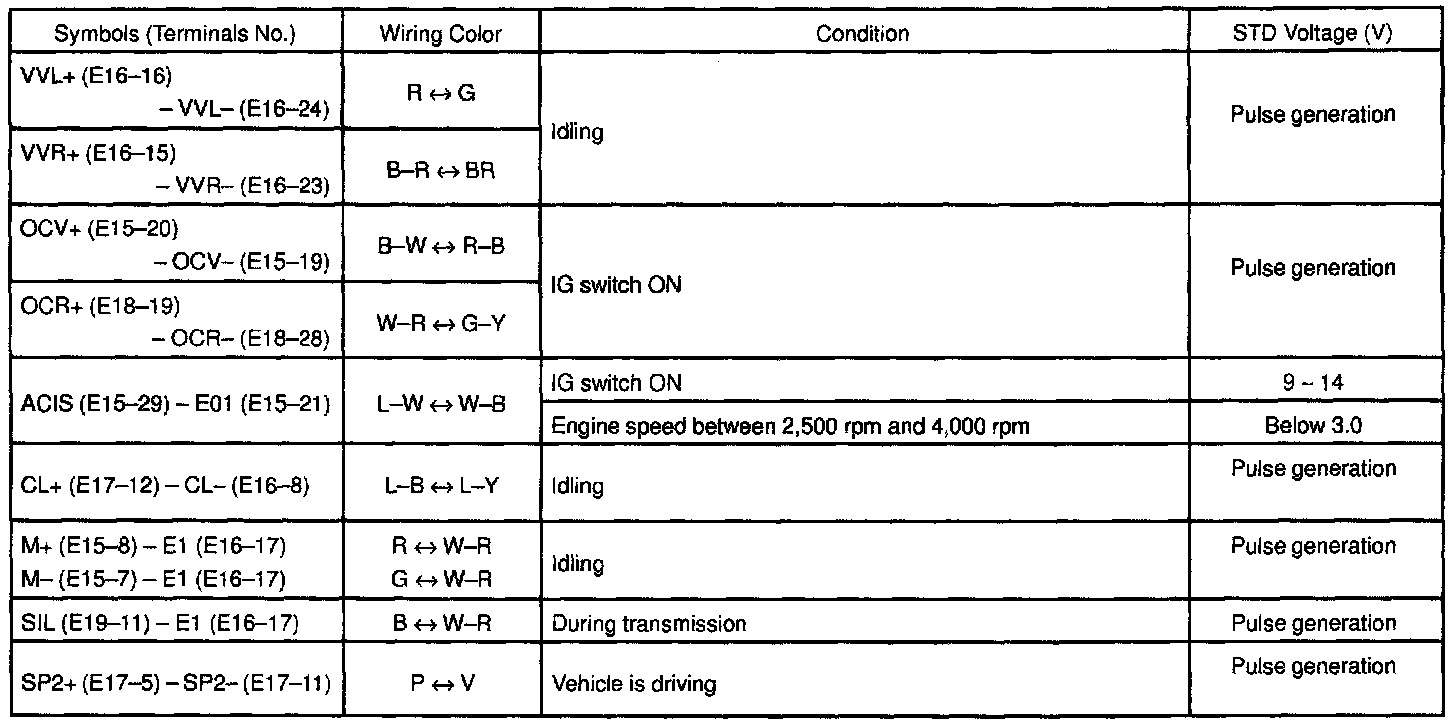 ECM Pinout Values Chart 2 Of 3: