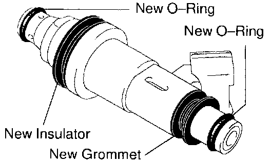 (b) Apply a light coat of gasoline to 2 new O-rings and install them to each injector.
