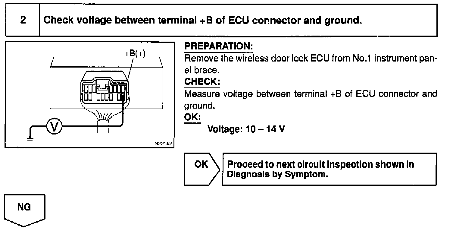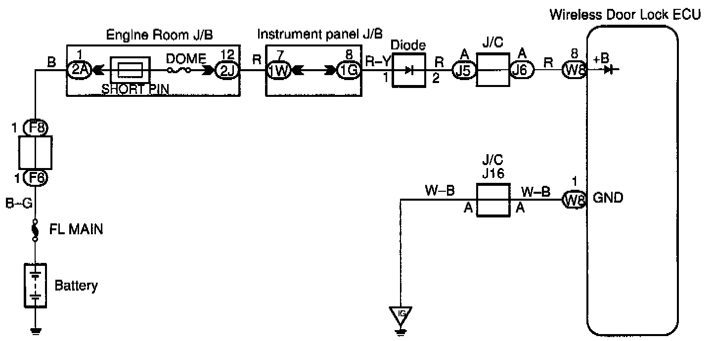 Battery positive voltage is always applied to the terminal +B of the wireless door look ECU.
