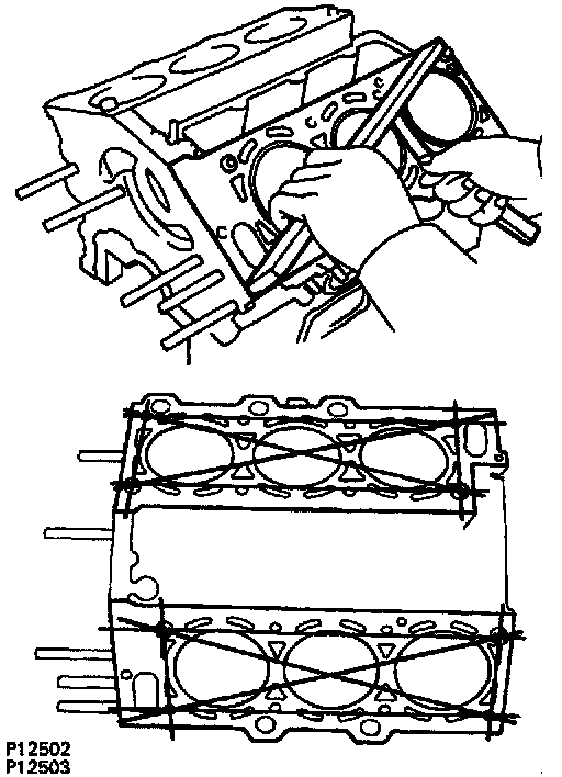 Using a gasket scraper, remove all the gasket material from the top surface of the cylinder block.