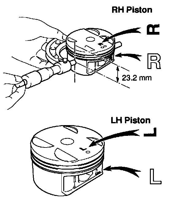 HINT: The shape of the piston varies for the RH and LH banks. The RH piston is marked with "R", the LH piston with "L".