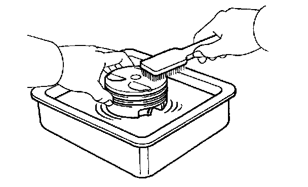 c. Using solvent and a brush, thoroughly clean the piston.