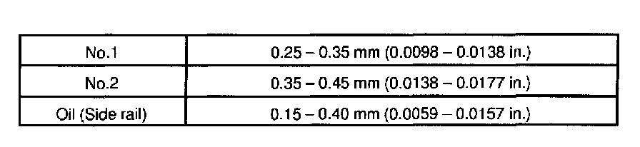 If the end gap is greater than maximum, replace the piston ring.