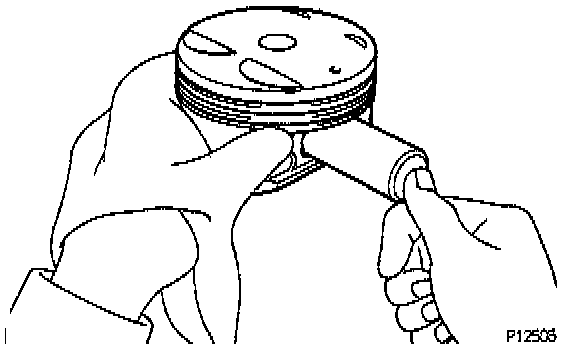 e. Check the piston pin fit at normal room temperature. Coat the piston pin with engine oil, and push it into the connecting rod with your thumb.