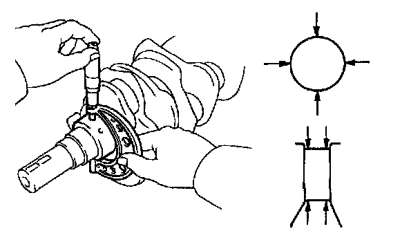 b. Check each main journal and crank pin for taper and out-of-round as shown.