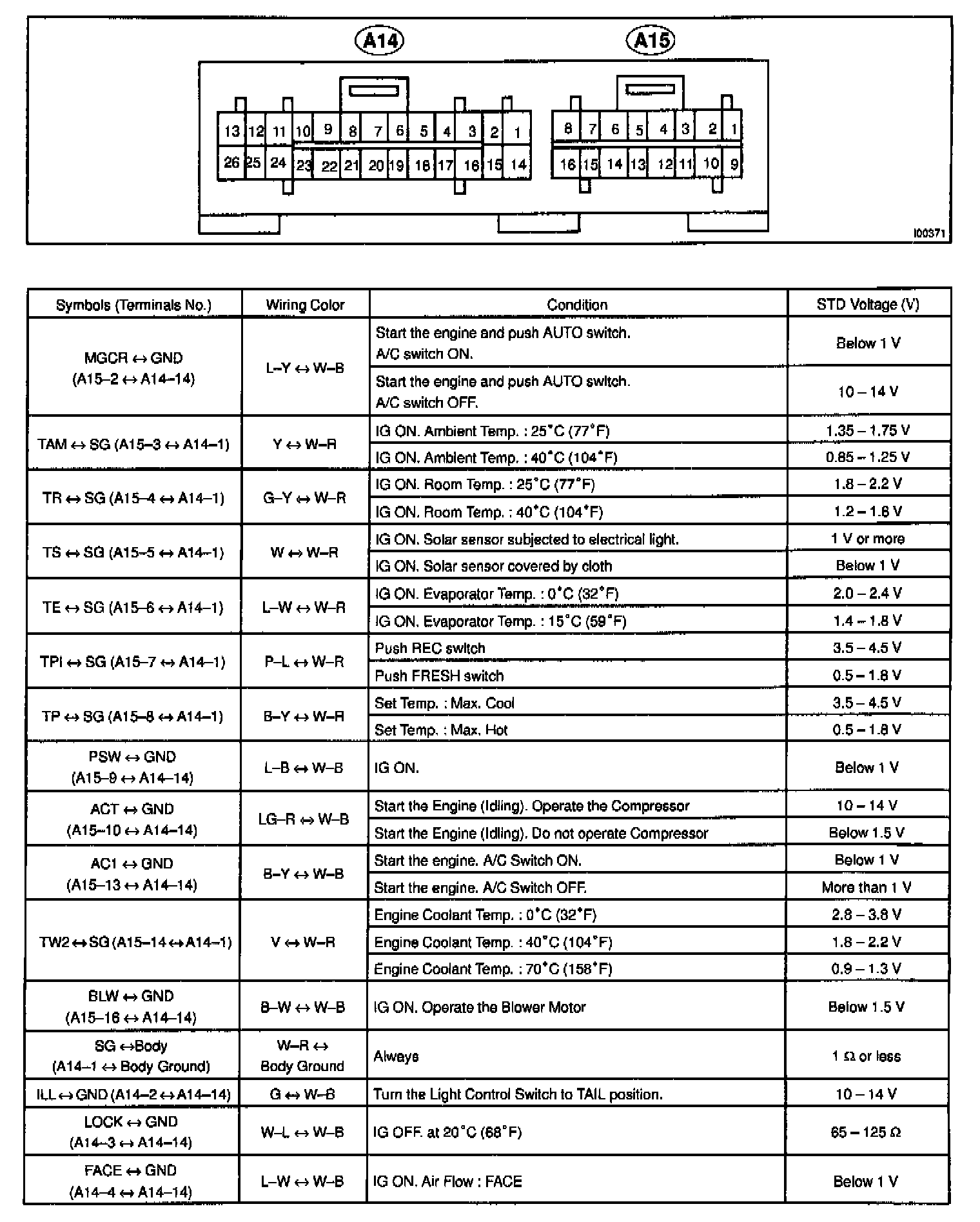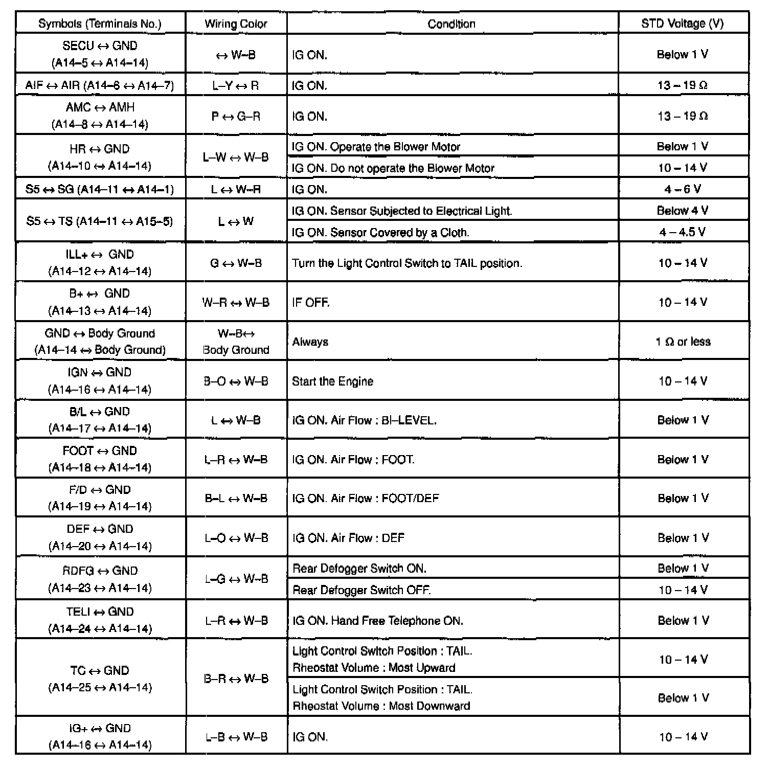 Pinout Values and Diagnostic Parameters