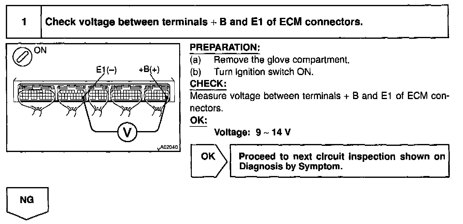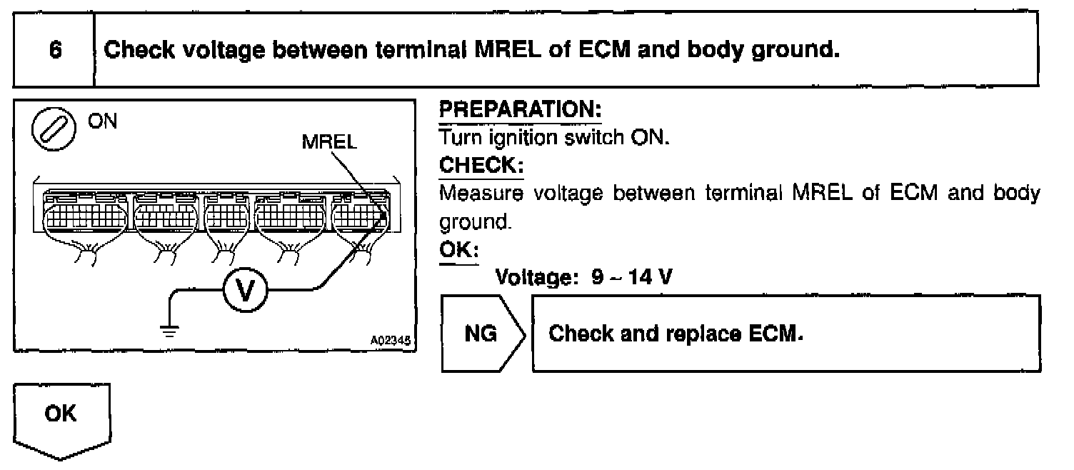 This signal causes current to flow to the coil, closing the contacts of the EFI main relay and supplying power to terminal +B of the ECM.