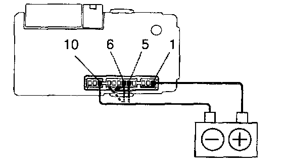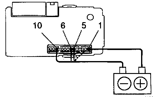 b. Connect the negative (-) lead from the battery to terminals 5, 6 and 10.