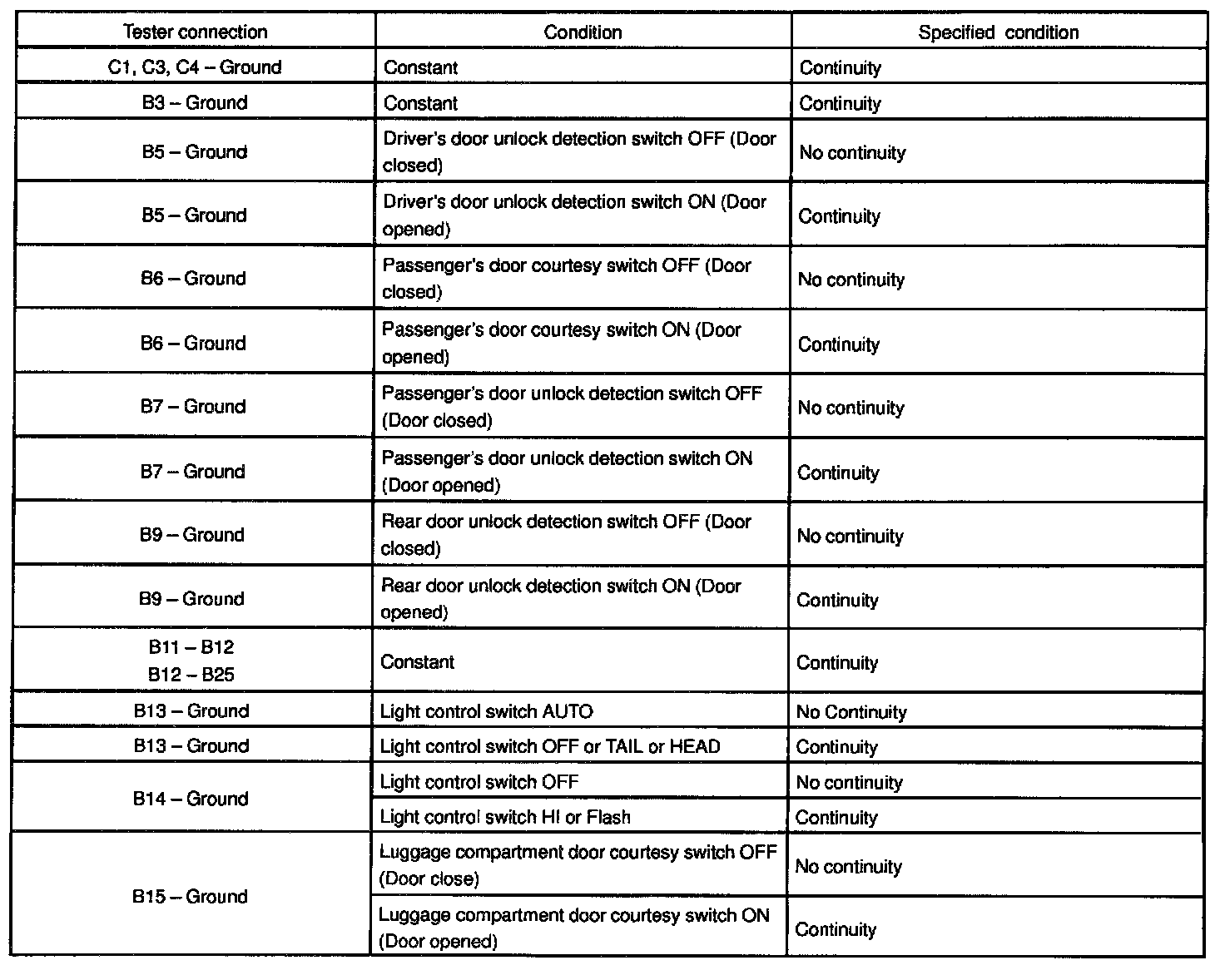 Power Door Lock Relay: Testing and Inspection