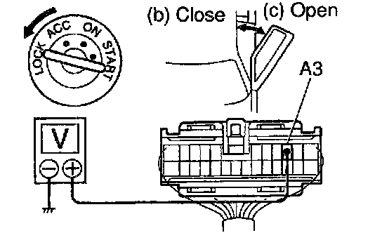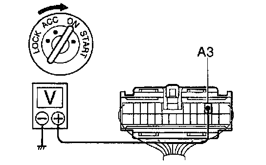 a. Connect the positive (+) lead from the voltmeter to terminal A3 and the negative (-) lead to body ground.