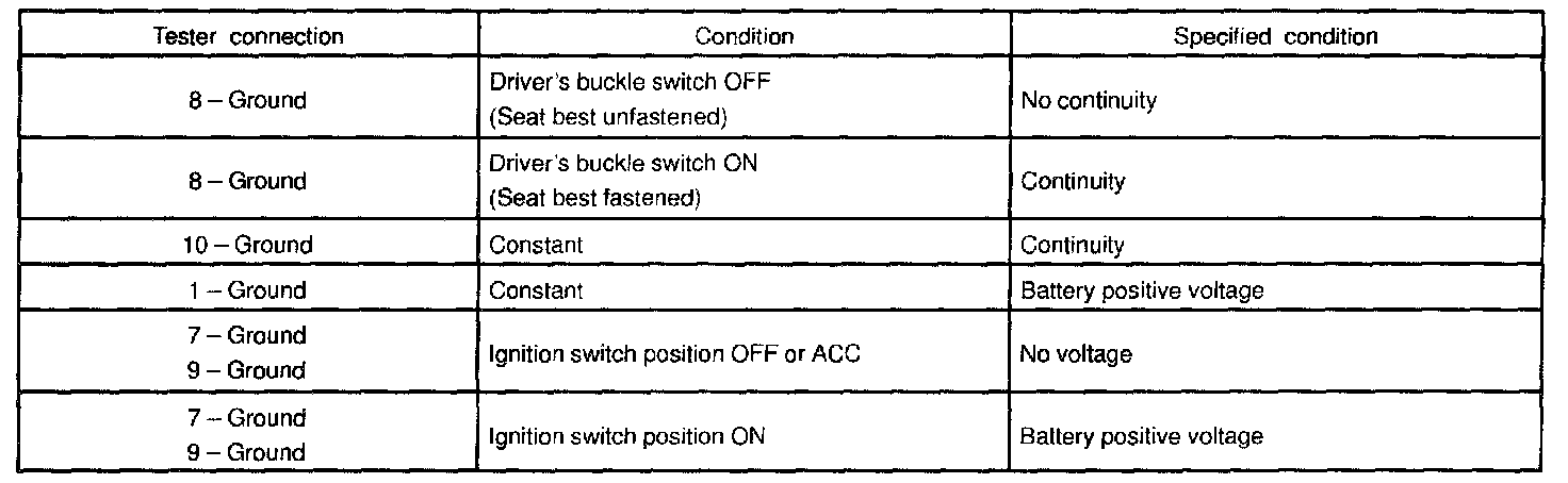 INSPECT INTEGRATION RELAY SEAT BELT WARNING SYSTEM OPERATION