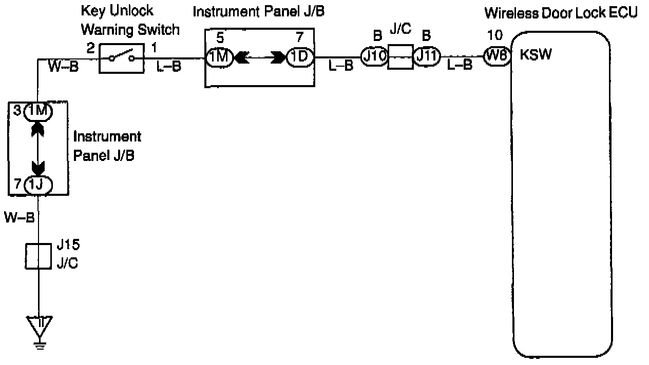 CIRCUIT DESCRIPTIONWhen the key is inserted in the ignition key cylinder, the key unlock warning switch comes ON, and when the key is not inserted the switch is OFF.