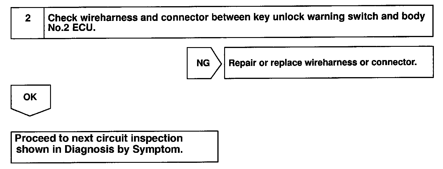 CIRCUIT DESCRIPTIONThe key unlock warning switch goes on when the ignition key is inserted in the key cylinder and goes off when the ignition key is removed.