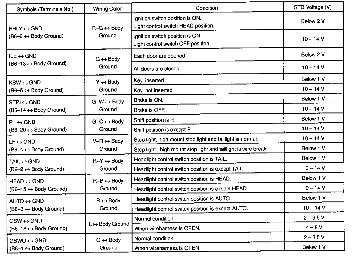 Pinout Values and Diagnostic Parameters
