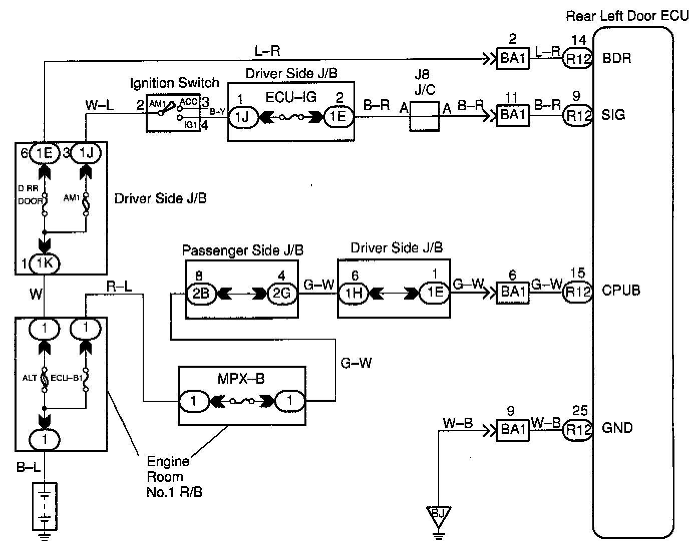 This circuit provides power to operate the rear left door ECU.