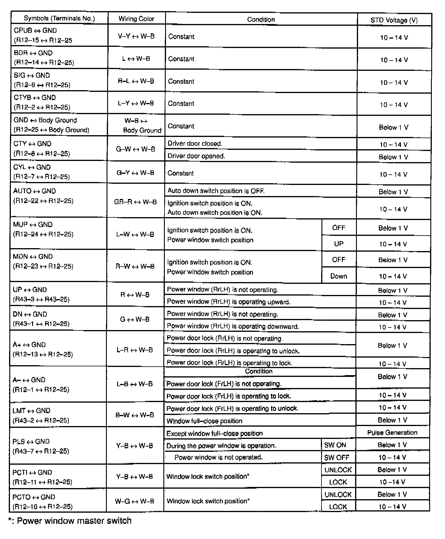 Pinout Values and Diagnostic Parameters