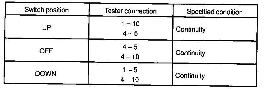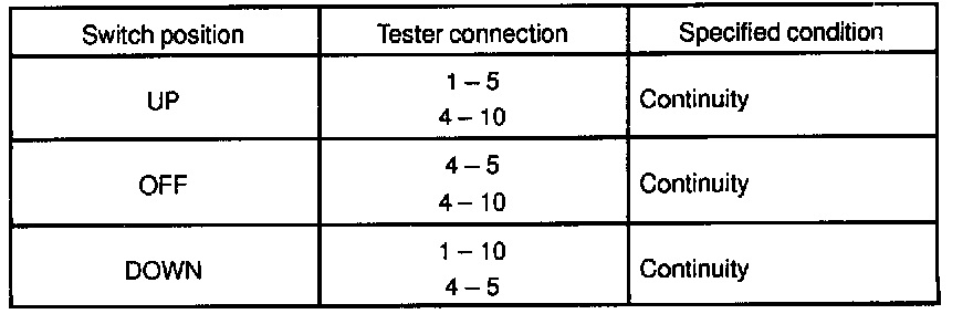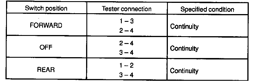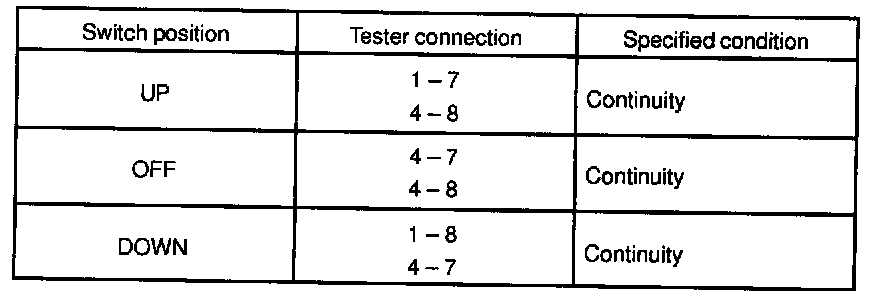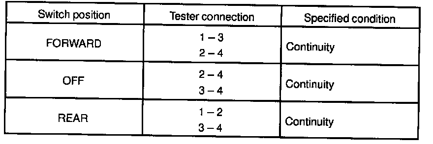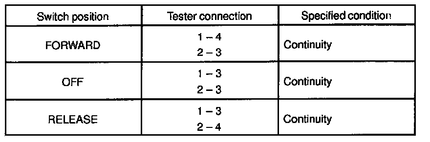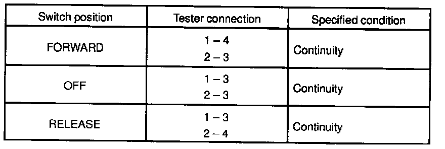 If continuity is not as specified, replace the switch.