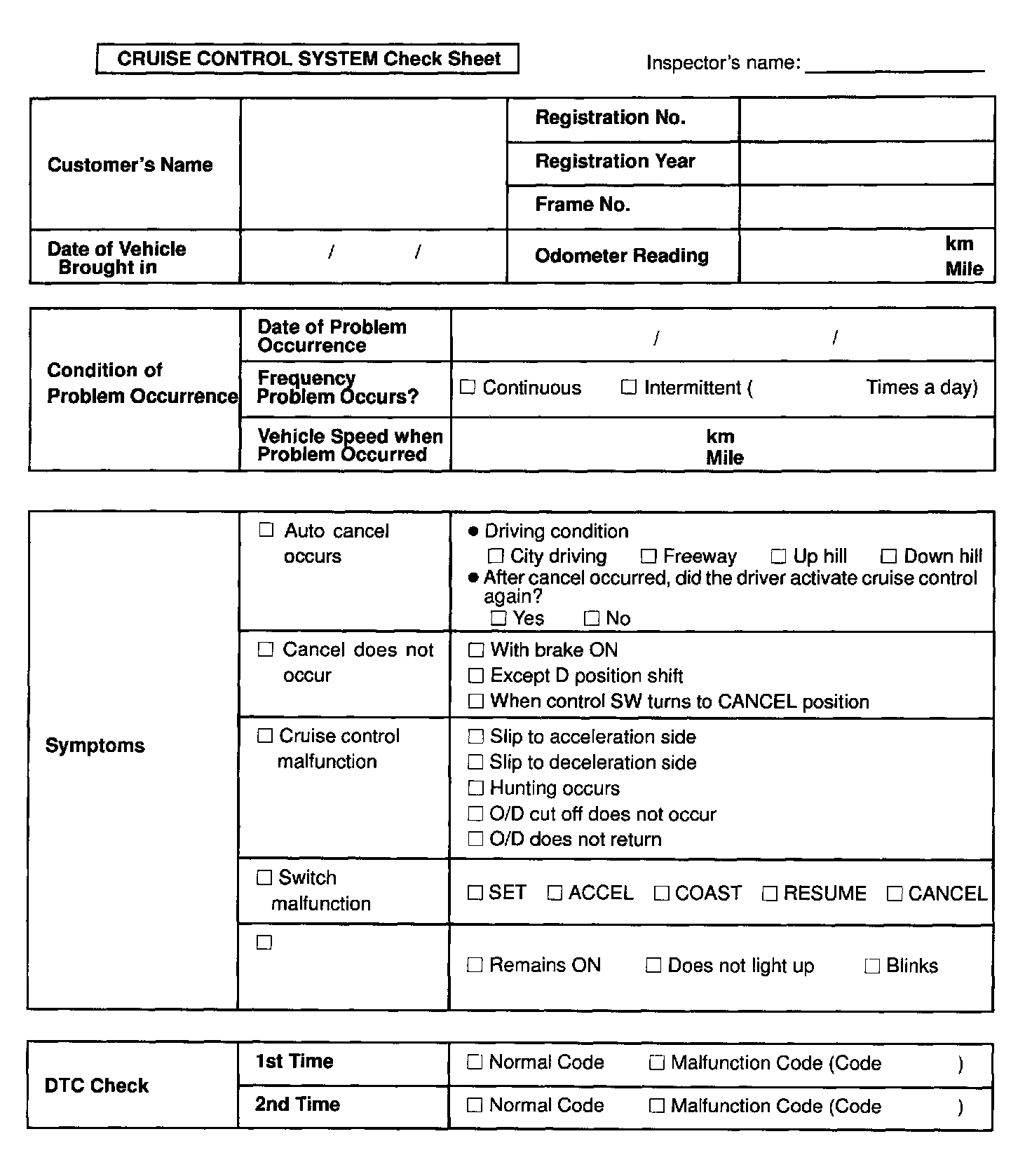 Customer Problem Analysis Check Sheet