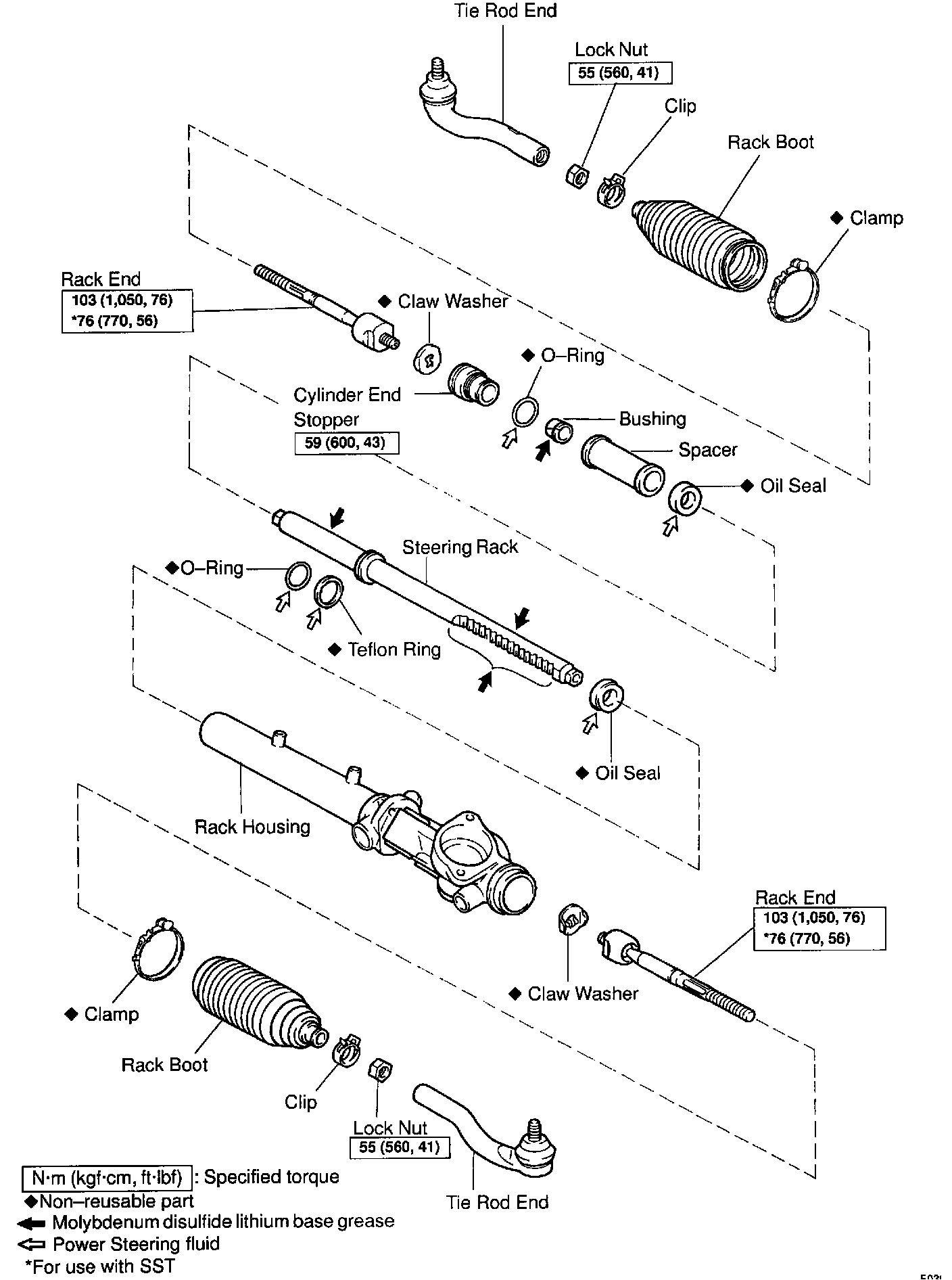STEERING RACK, RACK HOUSING AND RACK ENDS