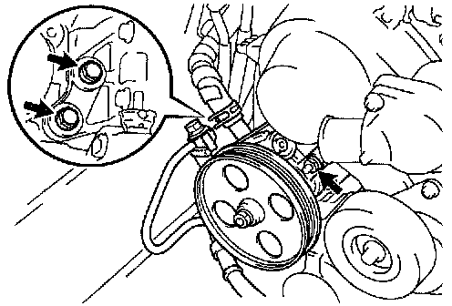 c. Remove the 2 bolts and nut, and disconnect the PS pump from the engine.