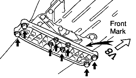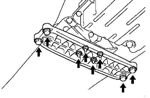 e. Install the rear engine mounting member with the 4 bolts and 4 nuts.