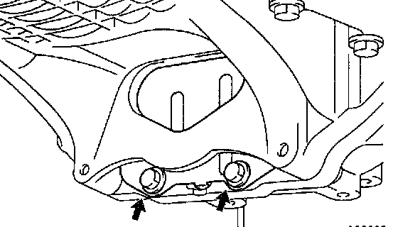 d. Remove the 4 nuts holding the engine mounting insulators to the front suspension crossmember.