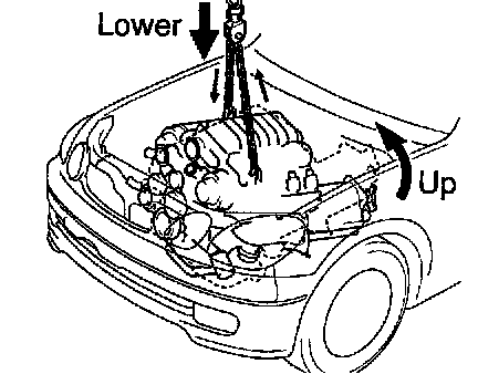b. Slowly lower the engine and transmission assembly into the engine compartment.