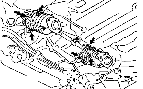 e. Remove the 4 bolts, 4 nuts and rear engine mounting member.