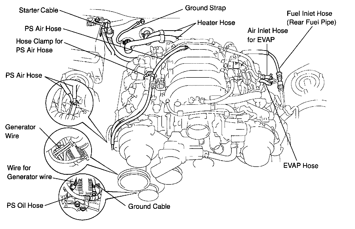 - 2 PS air hoses from hose clamp on No.3 RH timing belt cover