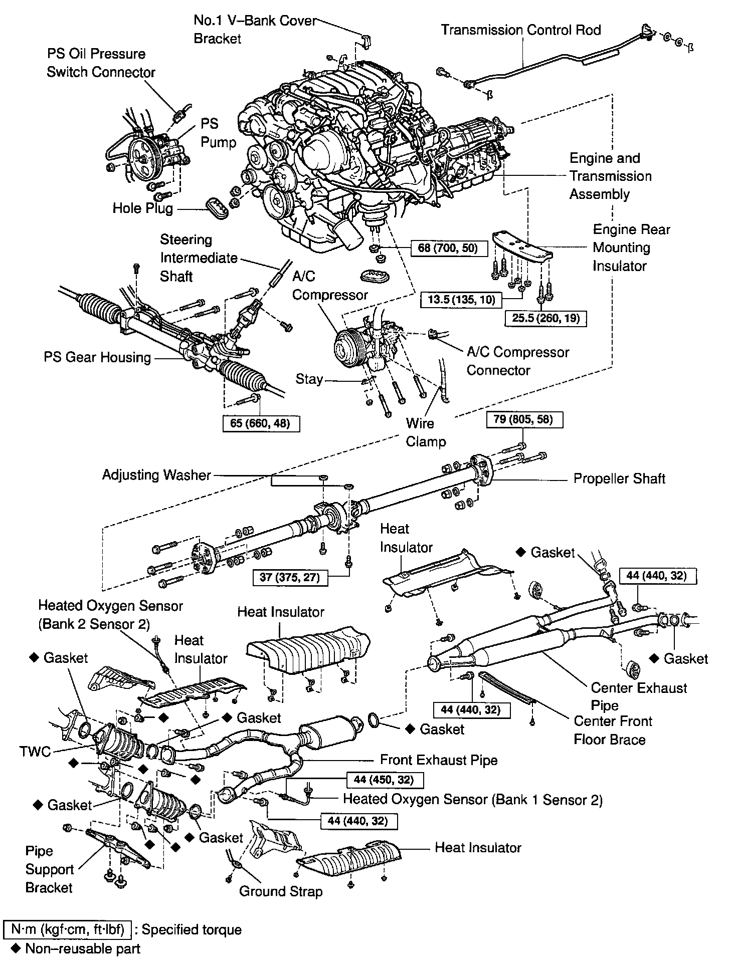 43.1 Nm (440 kgf.cm, 32 ft. lbs.) for nut