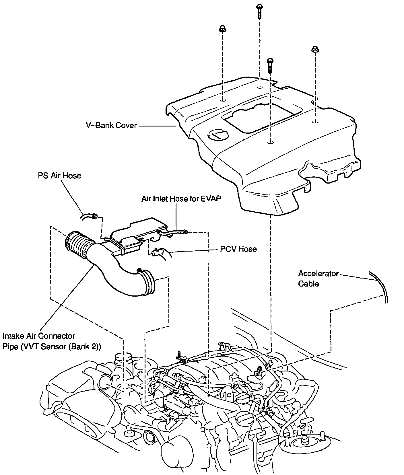 - No.3 V-bank cover bracket from upper intake manifold Accelerator cable and clamp