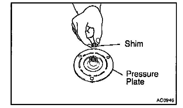 If the clearance is not within the standard clearance, adjust the clearance using shims to obtain the standard clearance.