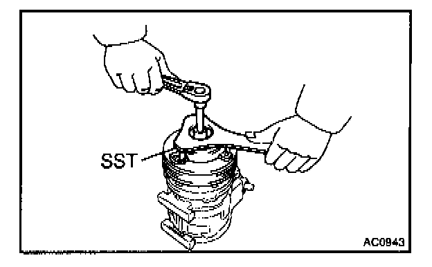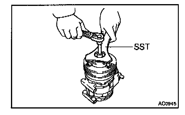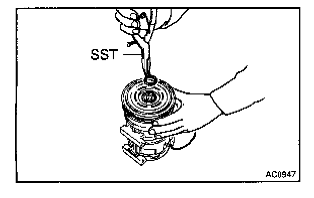 AFTER REASSEMBLY, CHECK MAGNETIC CLUTCH CLEARANCE