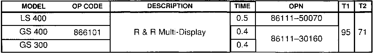 Owners of some 1998 - 2000 model year LS 400 CS 400 and CS 300 vehicles equipped with the Lexus navigation system may notice that the air conditioning system temperature display is blank on some occasions when starting up the car. In addition, the other climate control indicators will not illuminate, though the climate control system will operate properly. A logic change to the microprocessor in the multi-display unit corrects this condition.