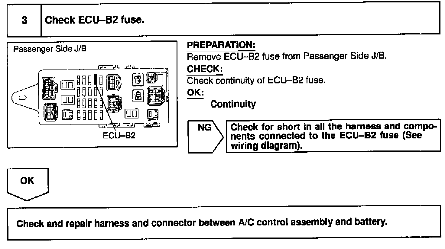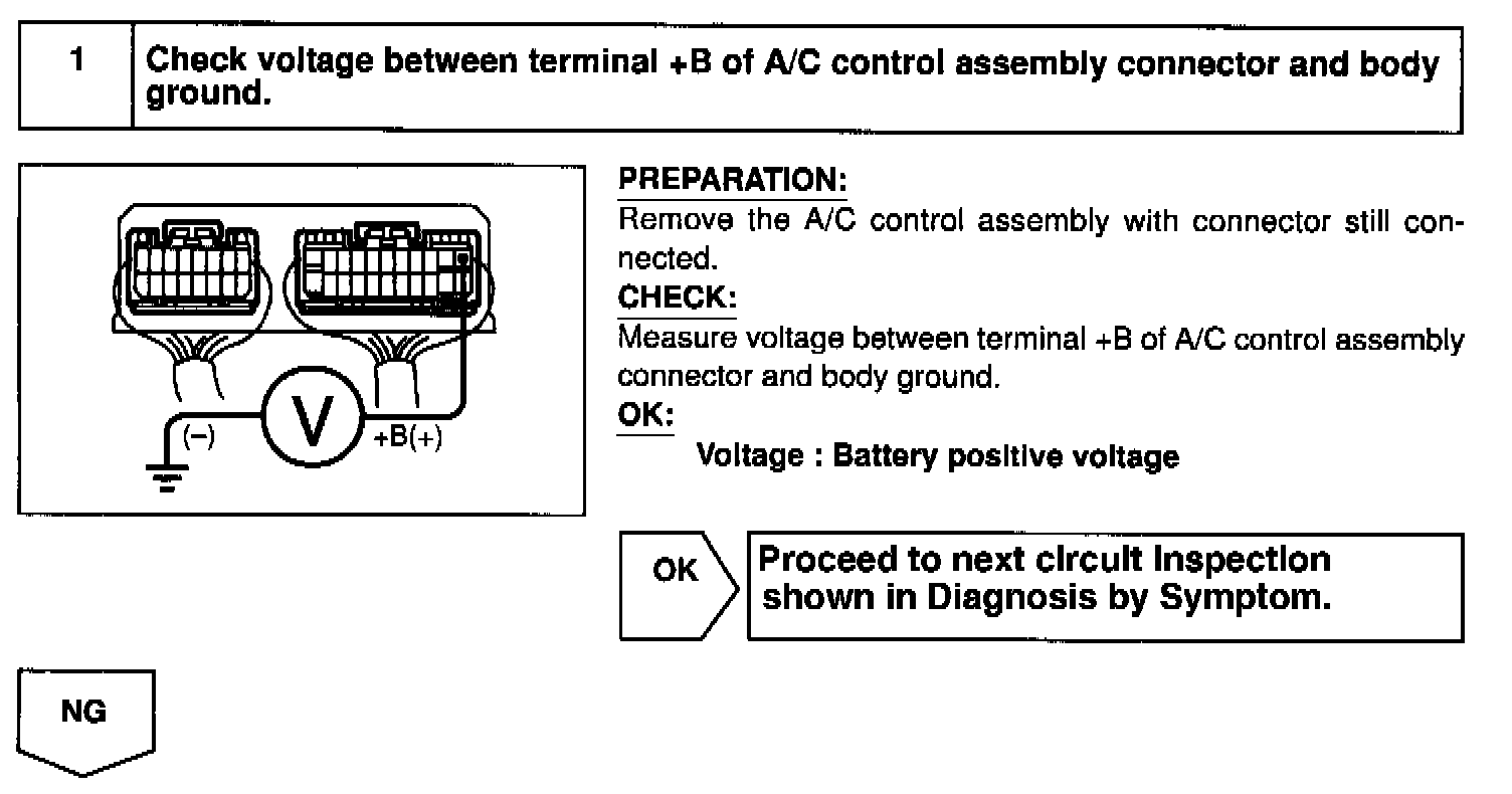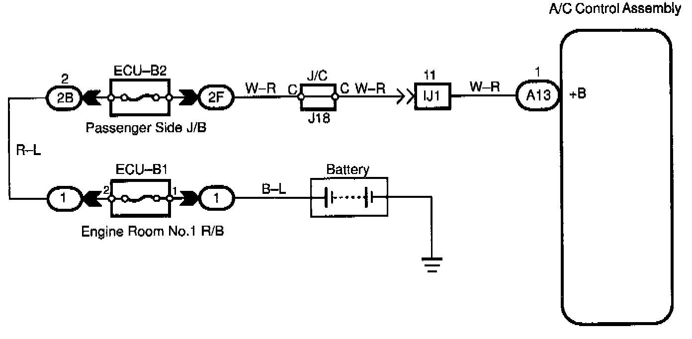 This is the backup poser source for the A/C control assembly. Power is supplied even when the ignition switch is off and is used for diagnostic trouble code memory, etc.