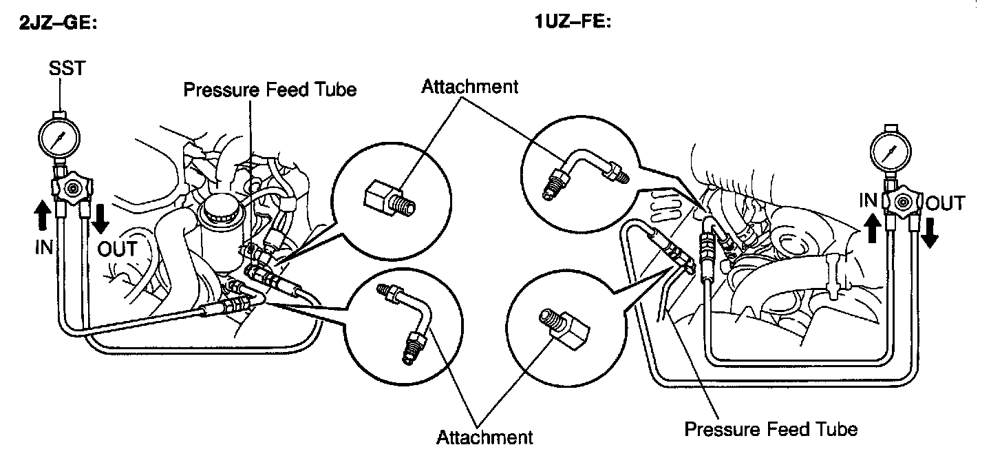 h. With the engine idling, close the valve of the SST and observe the reading on the SST