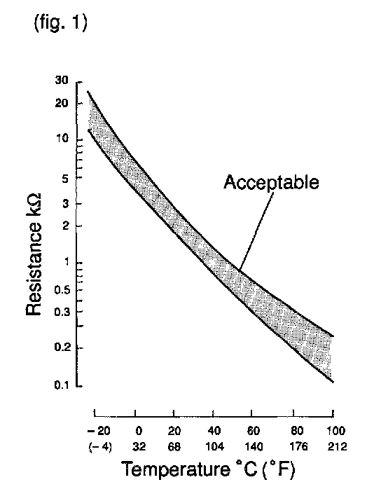 The lower the intake air temperature, the greater the thermistor resistance value, and the higher the intake air temperature, the lower the thermistor resistance value (See fig. 1).