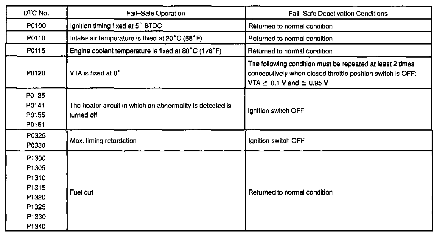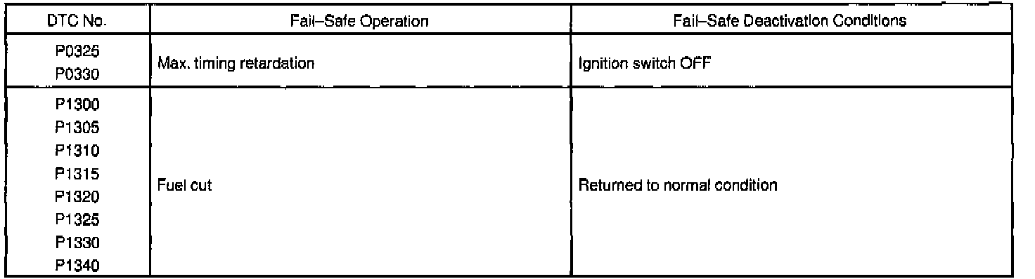 If any of the following codes is recorded, the ECM enters fail-safe mode.