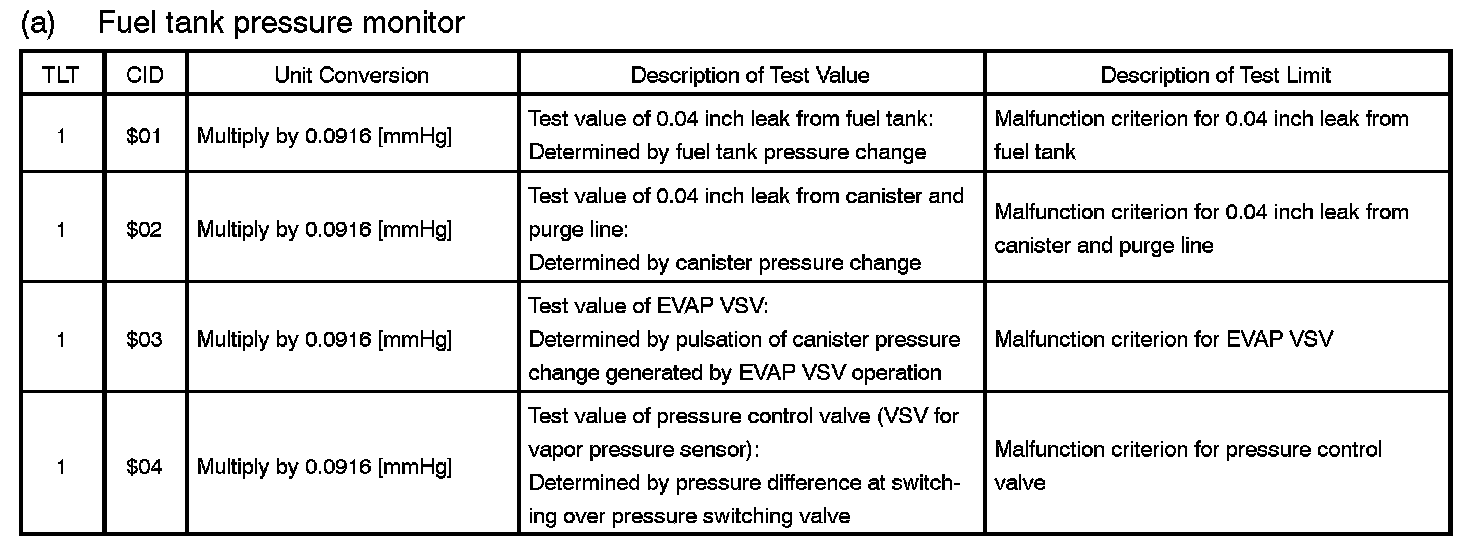 TID $02: EVAP (Fuel Tank Pressure Monitor):