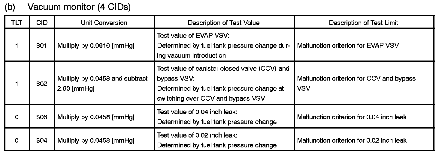 TID $02: EVAP (Vacuum Monitor (4 CIDs)):