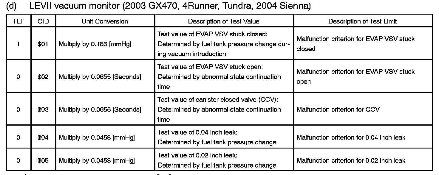 TID $02: EVAP (LEV II Vacuum Monitor (2003 GX470, Tundra, 2004 Sienna)):