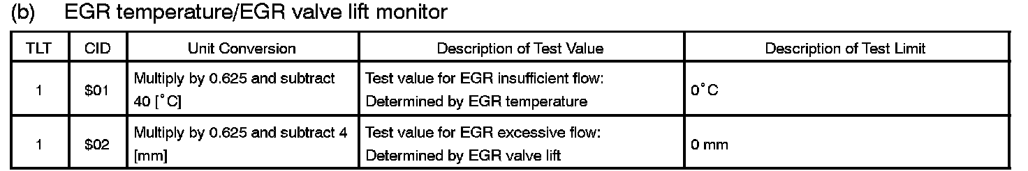 TID $05: EGR (EGR Temperature/EGR Valve Lift Monitor):