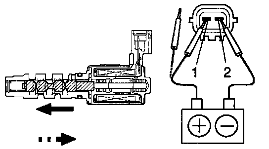 Connect the positive (+) lead from the battery to terminal 1 and negative (-) lead to terminal 2, and check the movement of the valve.