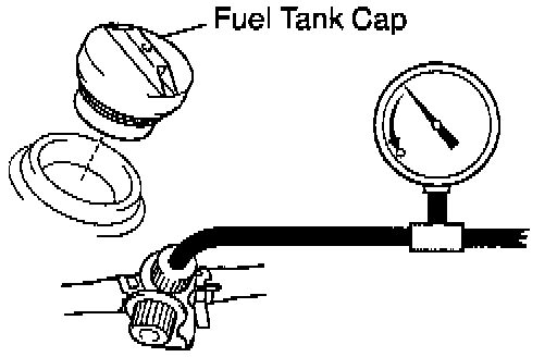 HINT: If the pressure does not decrease when the filler cap is removed, then you can conclude that the hose connecting the service port to the fuel tank is blocked, etc.
