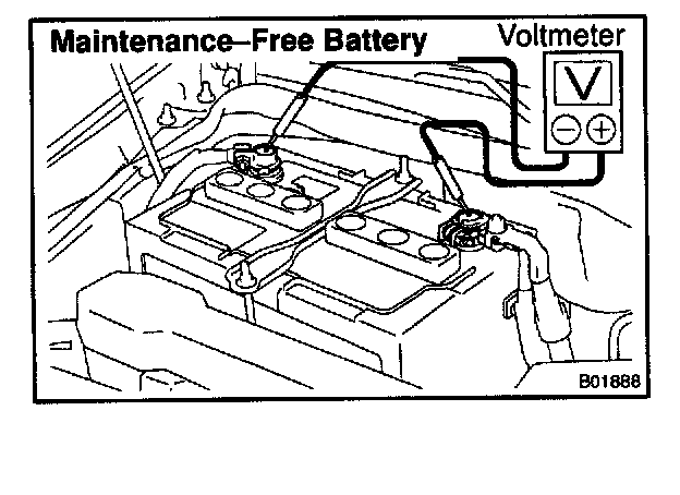 c. Measure the battery voltage between the negative (-) and positive (+) terminals of the battery.