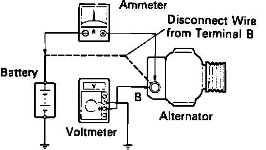 1. Disconnect the wire from terminal B of the generator, and connect it to the negative (-) tester probe of the ammeter.