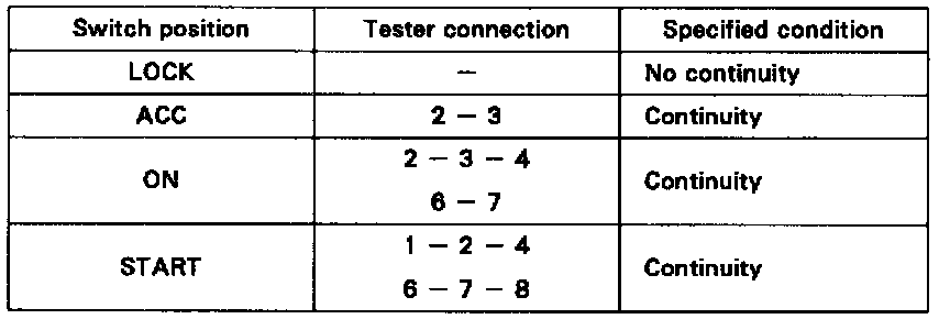 INSPECT KEY UNLOCK WARNING SWITCH CONTINUITY